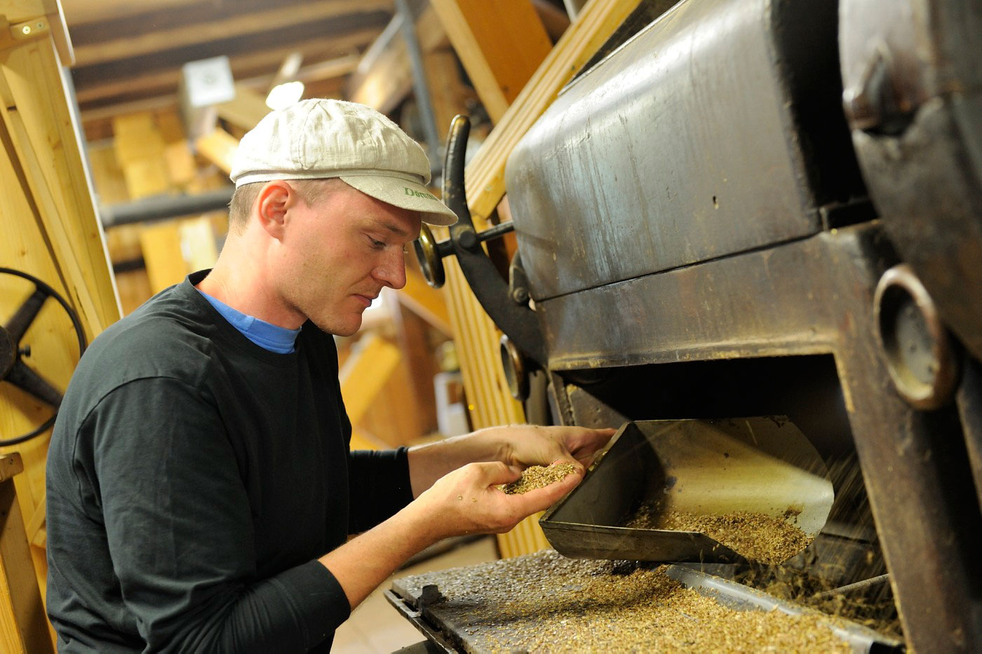 Beste Qualität: Regelmäßig wird während der Produktion die Qualität des Leinsamens begutachtet. Erfahren Sie mehr zur Technik der Mühle bei einer spannenden