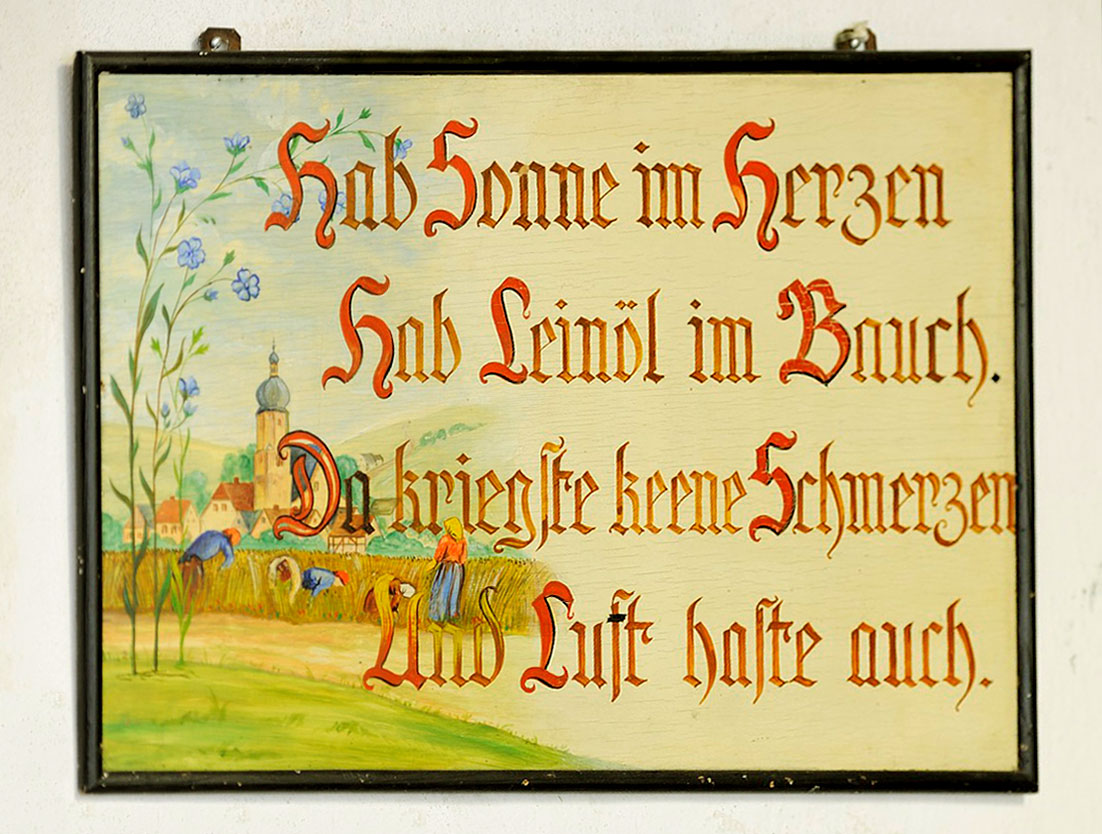 Unser Leitspruch: Hab Sonne im Herzen, hab Leinöl im Bauch. Da kriegste keene Schmerzen, Und Lus(f)t hast auch.