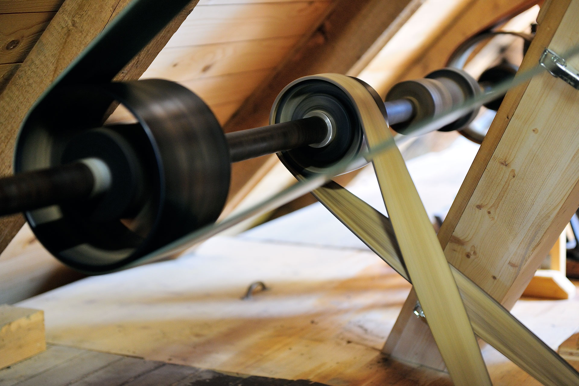Alte Mühlentechnik im täglichen Einsatz: Durch Transmission wird die Technik unserer Mühle zum Laufen gebracht.
