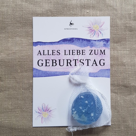 Karte ALLES LIEBE ZUM GEBURTSTAG mit kleiner Seife Lavendel