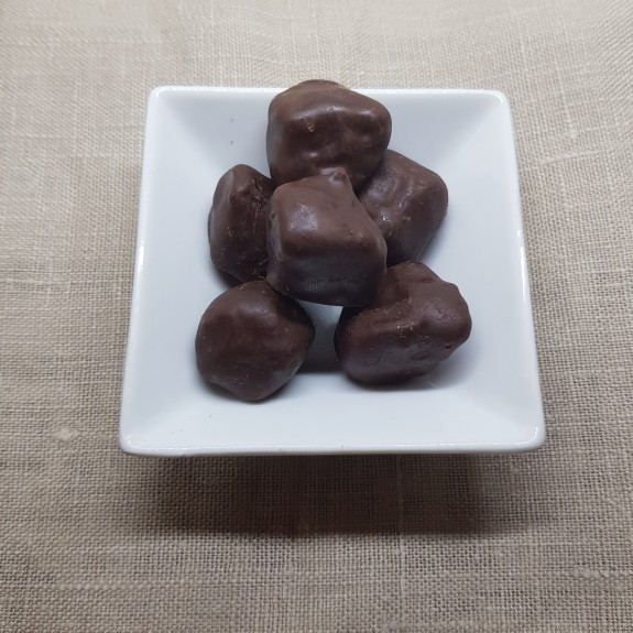 Zutaten: Ingwer kandiert 57% (Ingwer, Wasser, Zucker), Zartbitterschokolade 40% (Kakaomasse, Zucker, Kakaobutter), Kakaopulver schwach entölt