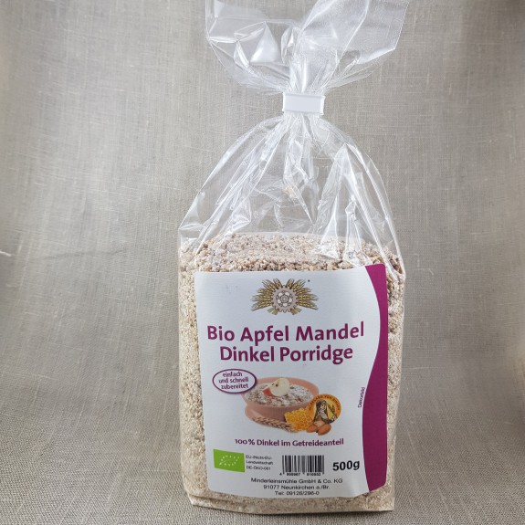Bio-Breigrundlage aus Dinkelflocken mit Äpfeln und Mandeln