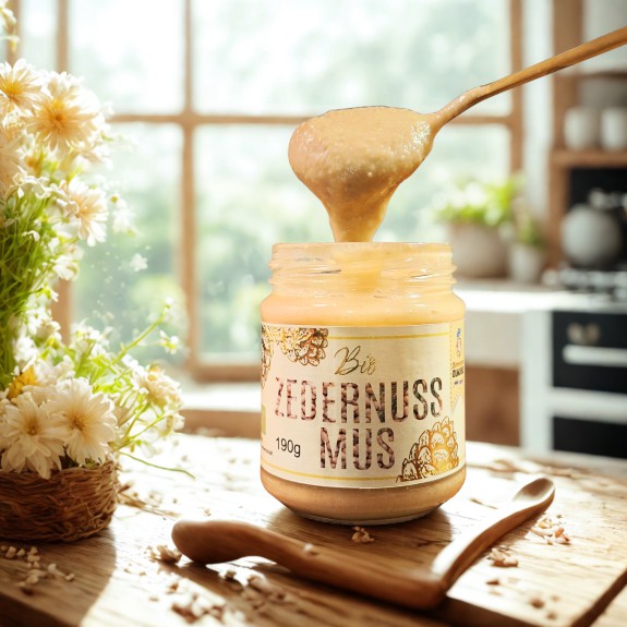Haltbarkeit und Lagerung: Kühl und dunkel gelagert bleibt unser Zedernussmus bis zu 2 Jahre haltbar. Sollte sich etwas des wertvollen Zedernussöls absetzen, einfach gut umrühren und weiter genießen.