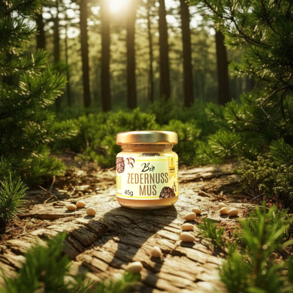 Unser cremiges Bio-Zedernussmus wird aus 100 % wild gesammelten Zedernüssen aus den unberührten Wäldern Sibiriens in Rohkostqualität schonend hergestellt. Dank der sanften Vermahlung bleiben sowohl die wertvollen Nährstoffe als auch das volle, charakteristische Aroma der Zedernüsse erhalten. Mehr Schmelz geht nicht!